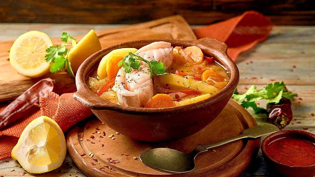 Hierva durante dos horas en media taza de agua por persona las aletas, los cueros y la cabeza del pescado, agregando una hoja de laurel, una cebolla partida en cuatro un ramo de perejil y dos dientes de ajo. Cuele el caldo base y póngalo en una olla. Agregue los trozos de carne que se obtengan de la cabeza. Las presas de pescado se aliñan con sal, pimienta, jugo de limón, un diente de ajo molido, orégano y una pizca de salsa de ají.