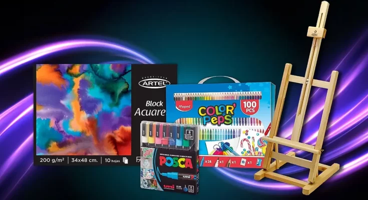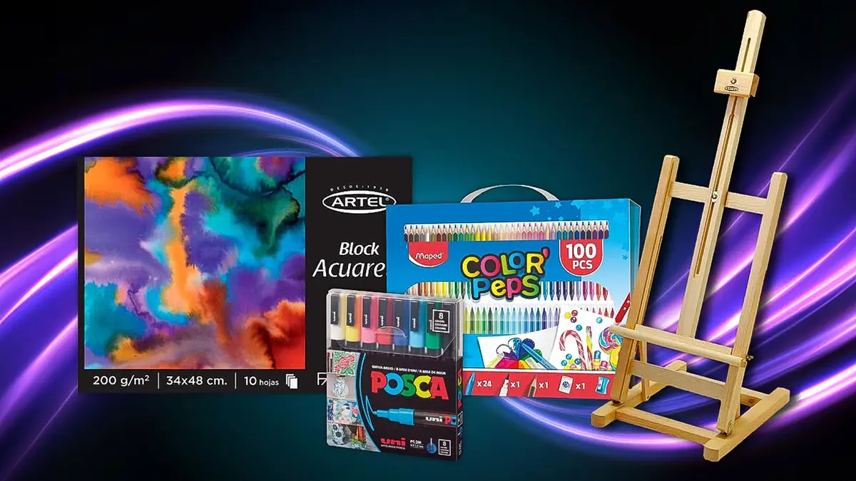 - Materiales de arte y manualidades (acrílicos, acuarelas, pinceles).